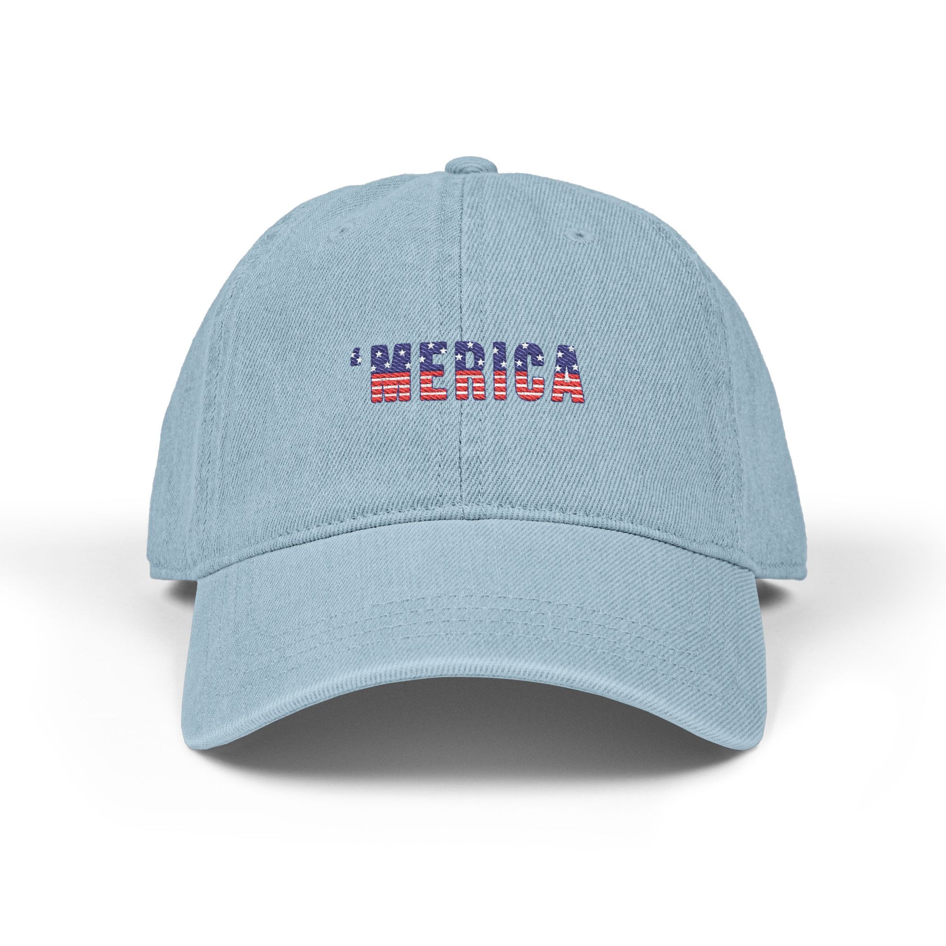 Embroidered 'MERICA Flag Text Denim Hat — Patriotic Adjustable Baseball Cap